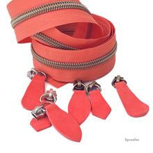 Pull & Style Leder-Zipper koralle Leaf altmessing