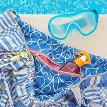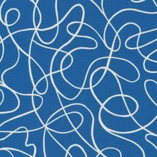 Schönster Bio-Baumwollstoff mit einem grafischen Muster auf riffblauem Grund.